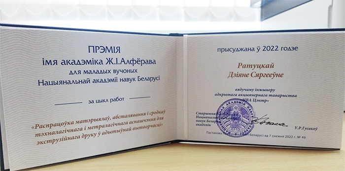 Поздравляем Ратуцкую Д.С. с присвоением премии им. академика Ж.И.Алферова